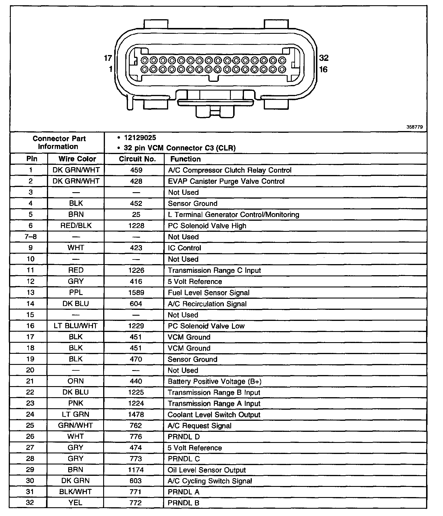 Vehicle Control Module (VCM) Connector C3: