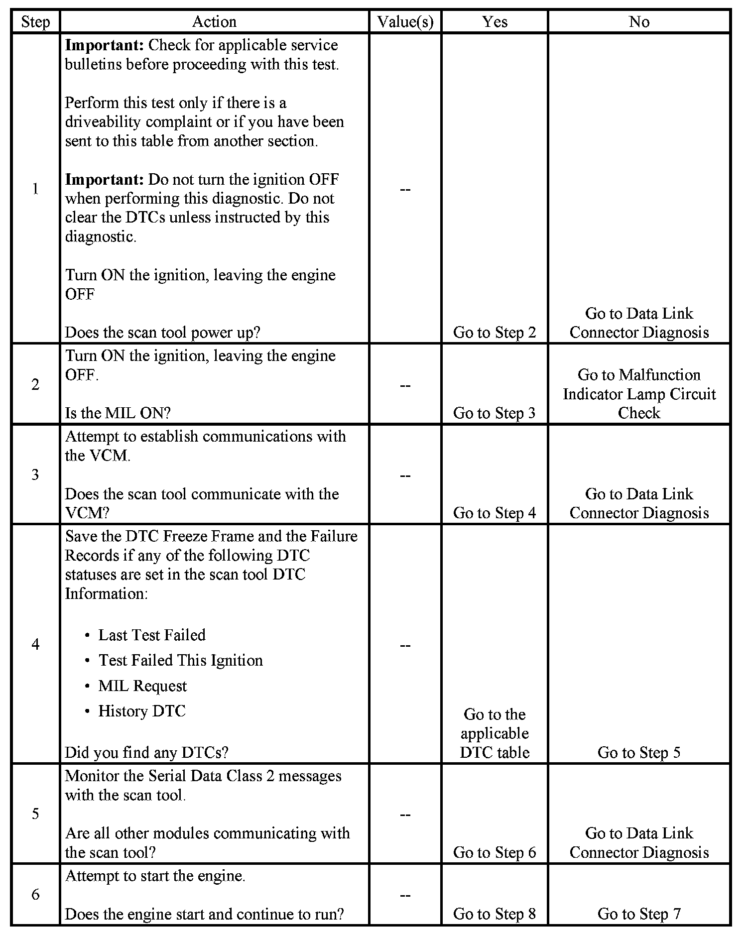 Understanding the table properly reduces the diagnostic time. Proper use of the OBD helps prevent the unnecessary replacement of good parts.