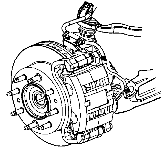 3. Remove the tire and wheel assembly. Refer to Tire and Wheel Removal and Installation in Wheels, Tires and Alignment.