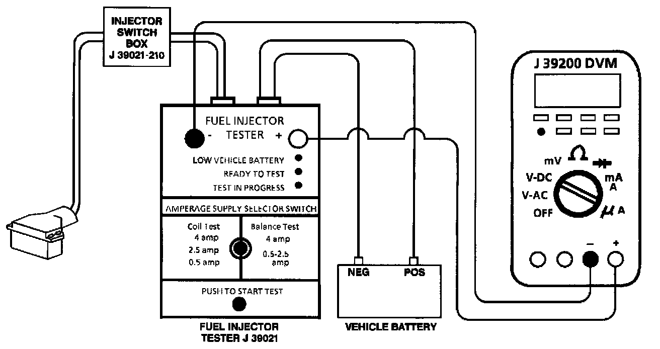 2. This step is the setup step for performing the injector coil test. Also read the instructions included with the tools used for this test.