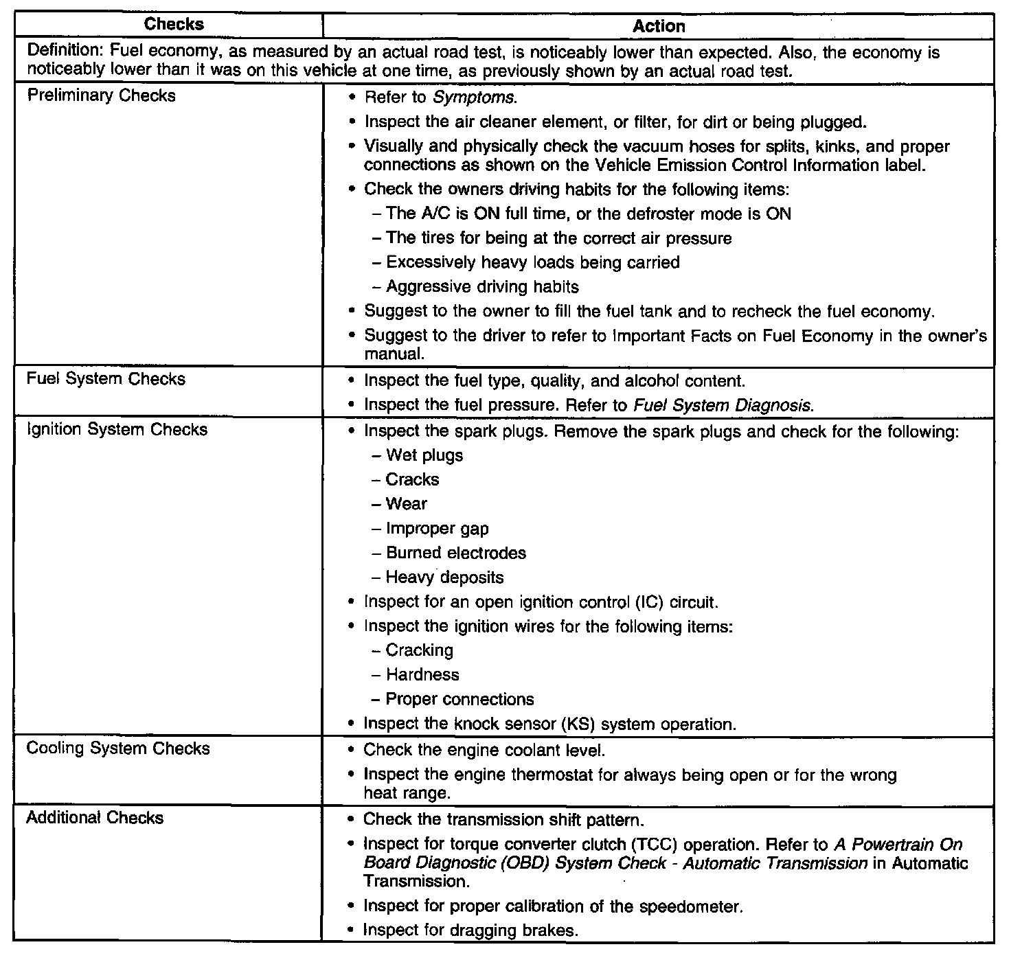 Poor Fuel Economy