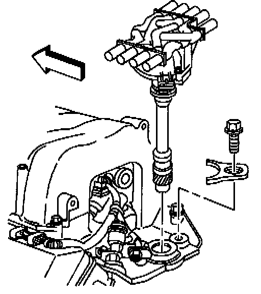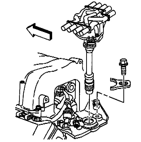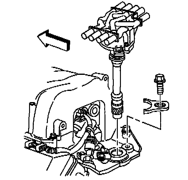 7. Install the distributor mounting clamp and bolt.