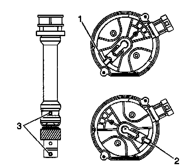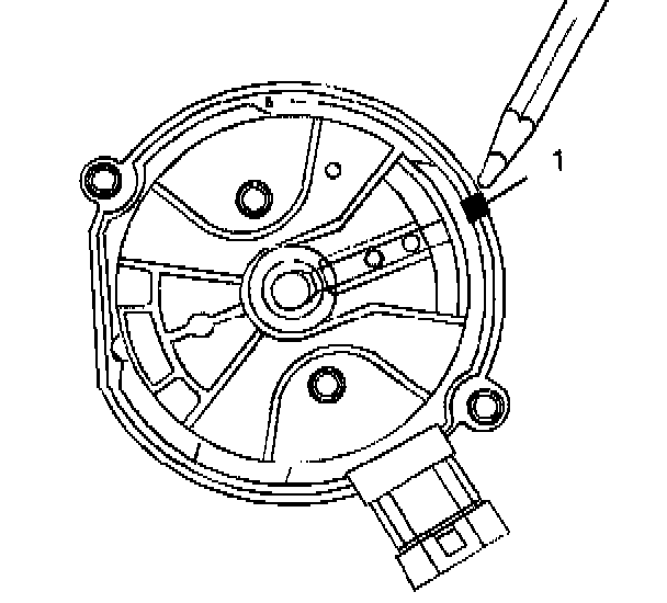NOTE: The OBD II ignition system distributor driven gear and rotor may be installed in multiple positions. In order to avoid mistakes, mark the distributor on the following components in order to ensure the same mounting position upon reassembly: