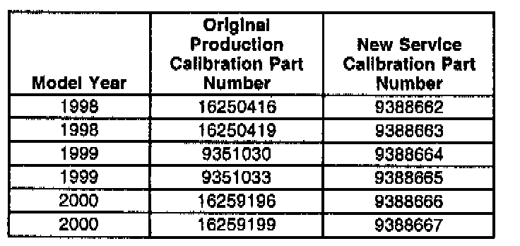 The calibrations listed are electronic calibrations and are NOT available from GMSPO. Calibrations will be available from Techline starting on the TIS 2000 CD 13 shipped to dealers 7/6/00.