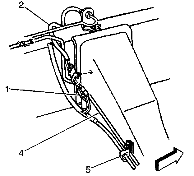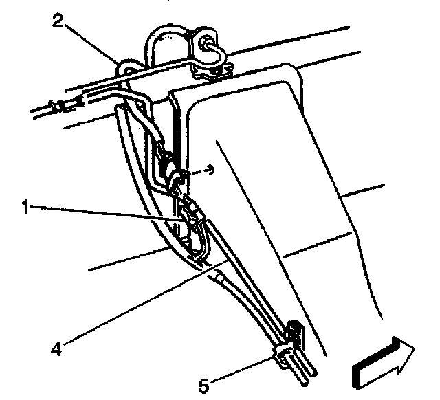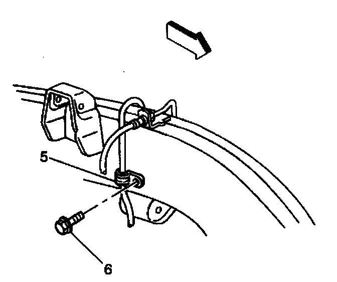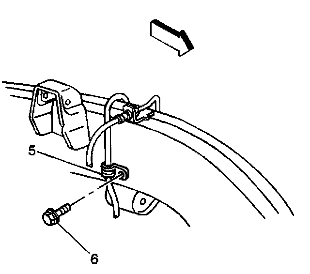 23. Install the wheel speed sensor mounting clip (5) to the inside frame rail.