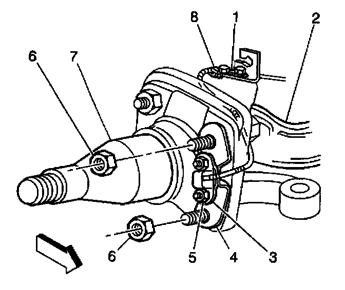 3. Remove the hub and rotor. Refer to Wheel Hub, Bearing, and Seal Replacement (S4WD).