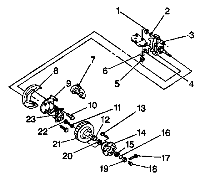 6. Remove bolts (22) attaching the rotor (21) to the hub (14).