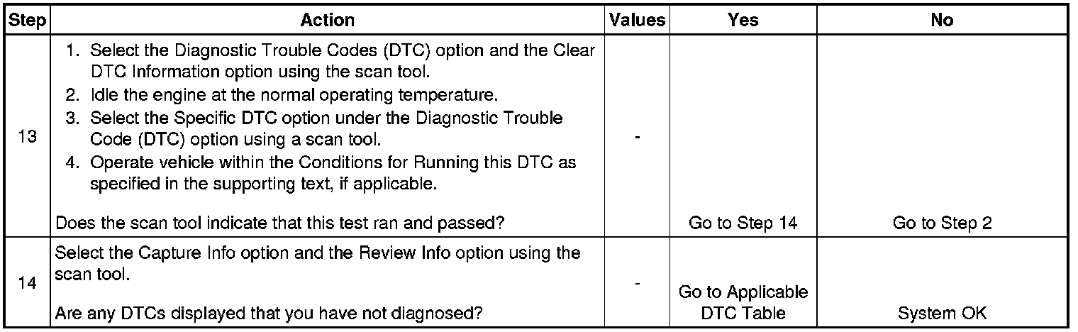 * A last test failed (current DTC) clears when the diagnostic runs and does not fail.