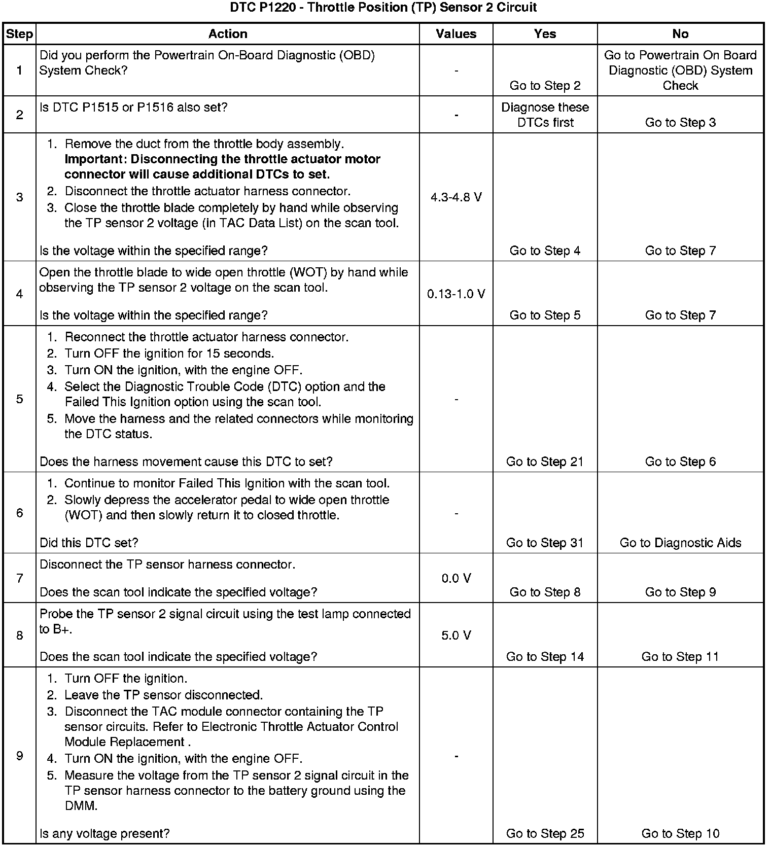 DTC P1220 Throttle Position (TP) Sensor 2 Circuit