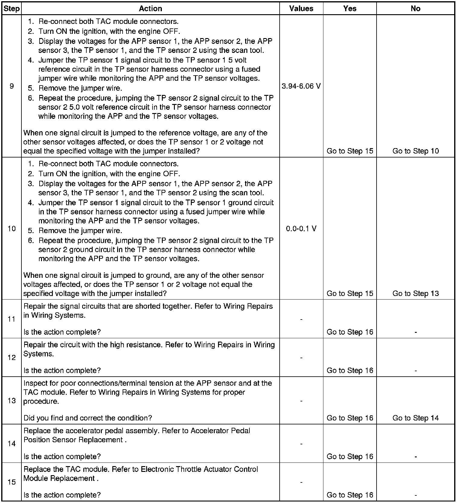 9. When jumping either of the TP sensor signal circuits to 5 volts should have no effect on any of the other sensor voltages. If the jumpering effects another parameter, there is a problem within the TAC module.