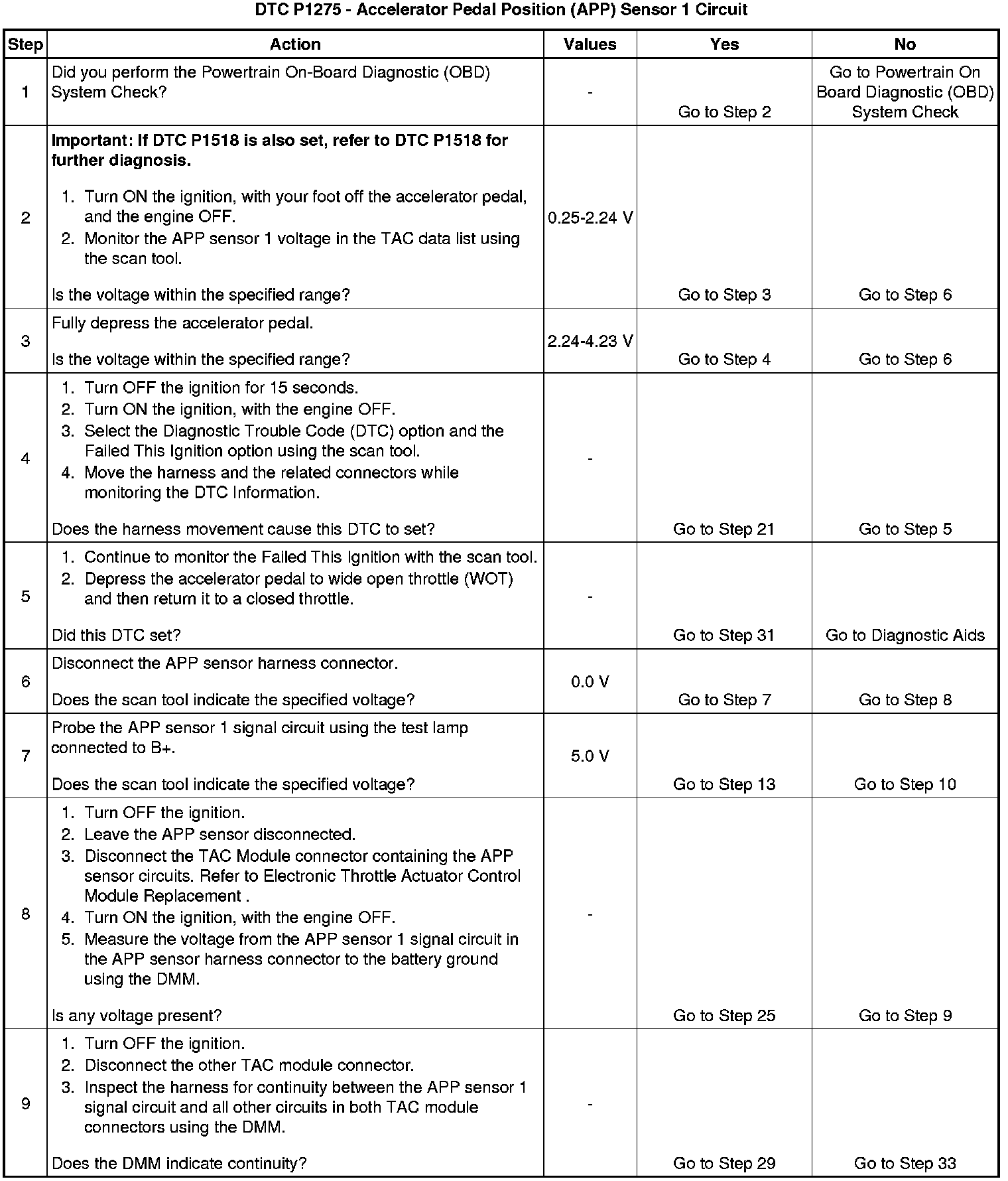 DTC P1275 Accelerator Pedal Position (APP) Sensor 1 Circuit