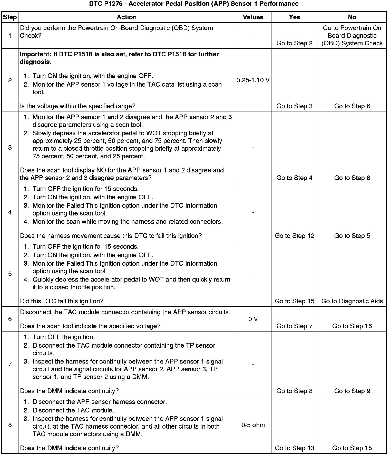DTC P1276 Accelerator Pedal Position (APP) Sensor 1 Performance