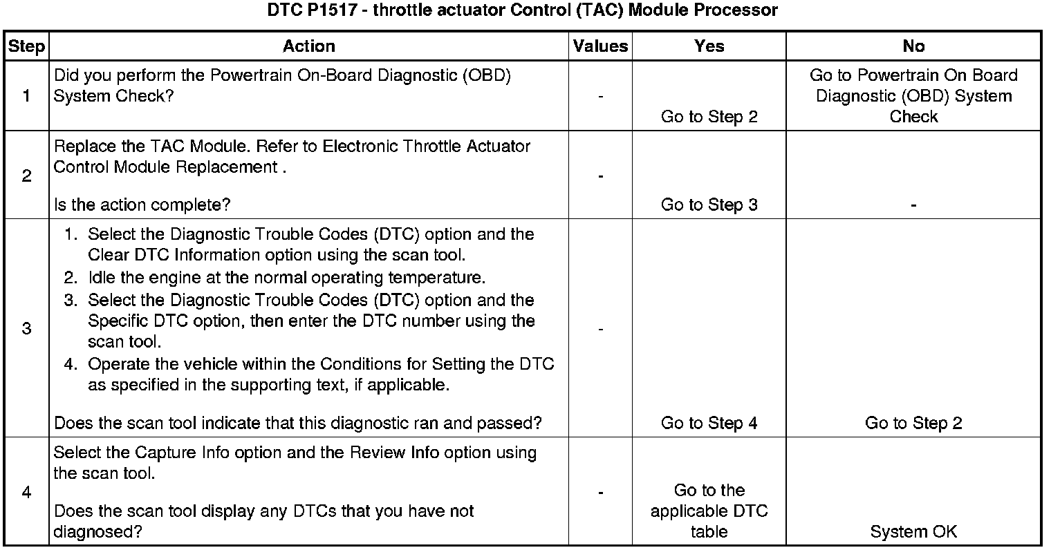 DTC P1517 Throttle Actuator Control (TAC) Module Performance