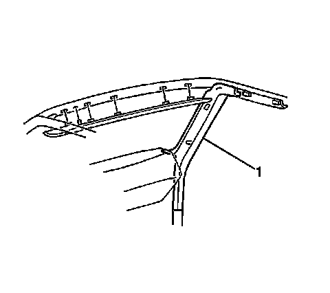 3. Install the windshield side garnish molding (1) by pressing the retainers into the pillar.