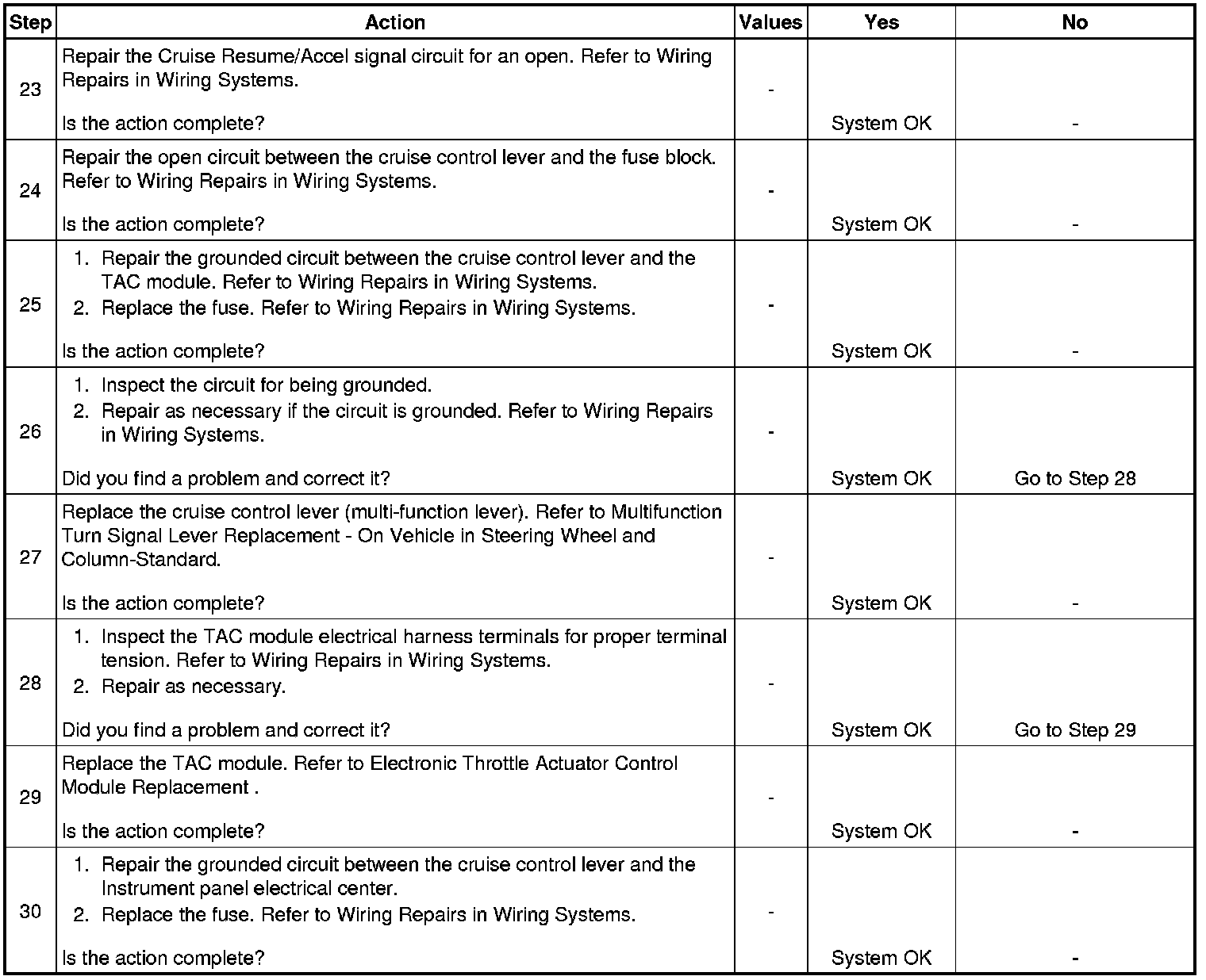 The cruise control system disables for the current ignition cycle if an intermittent condition exists.