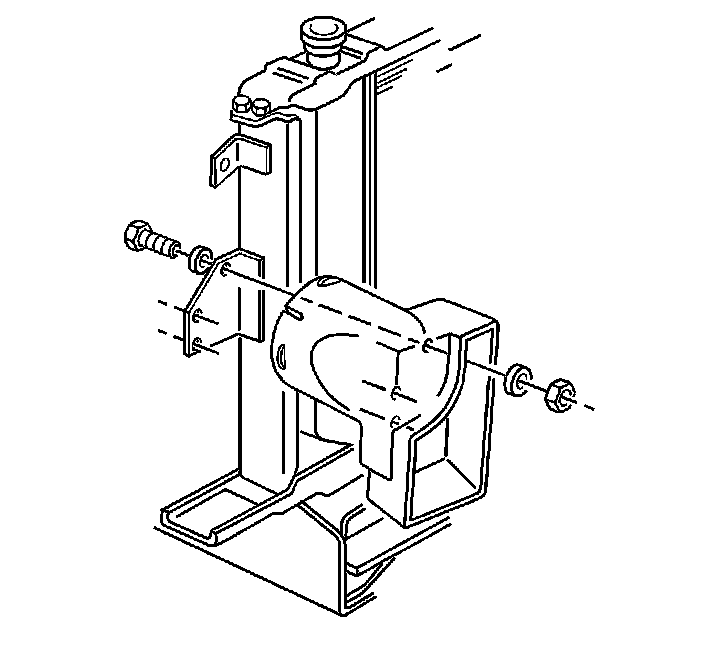 10. Remove the radiator side brace nuts and the washers from the radiator lower mounting panel.