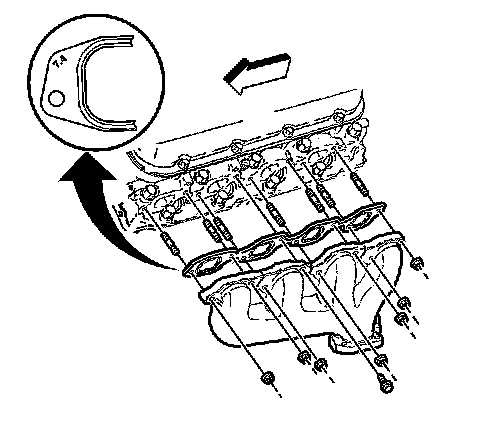 10. Install the lower intake manifold to the cylinder head. Refer to Intake Manifold Replacement (Upper Intake Manifold) Intake Manifold Replacement (Upper Intake Manifold)Intake Manifold Replacement (Lower Intake Manifold) Intake Manifold Replacement (Lower Intake Manifold).