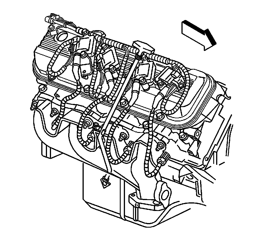 2. Properly position the oil level indicator tube and install the bracket nut to the right exhaust manifold stud.