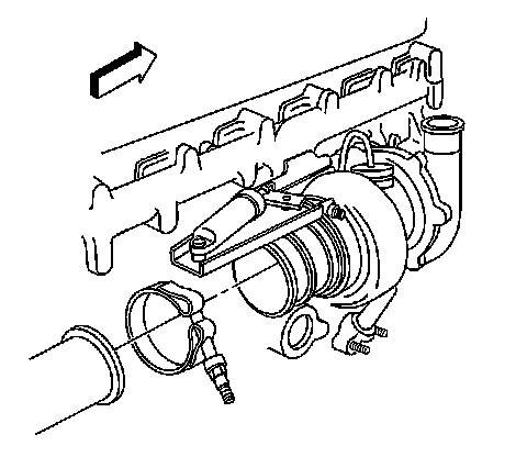 2. Install the new gasket, the exhaust brake on the Turbo with the upper clamp in original position.