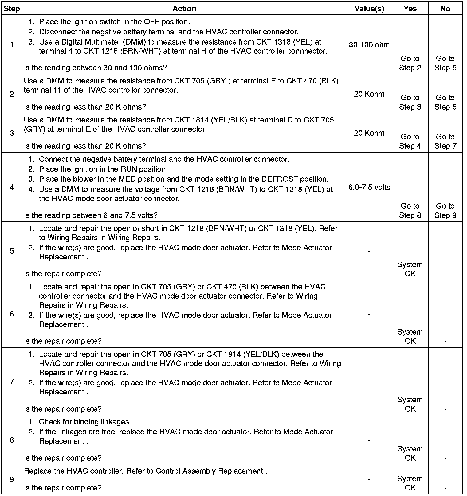 Mode Actuator Inoperative