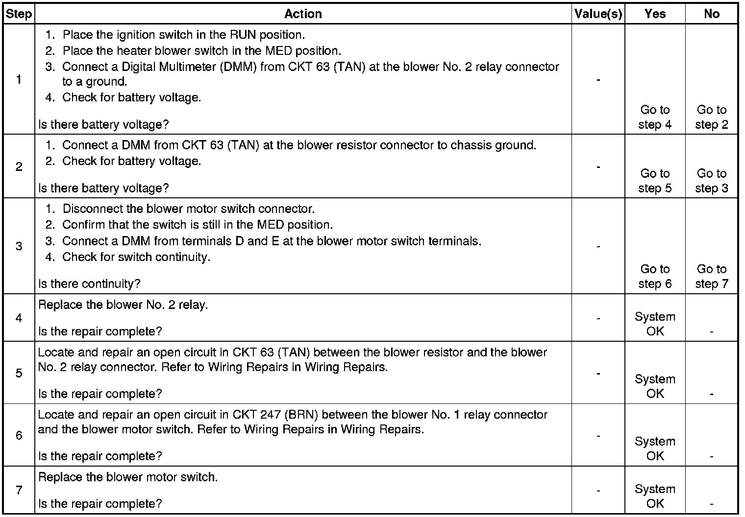 Blower Motor Medium Speed Inoperative (Non A/C)