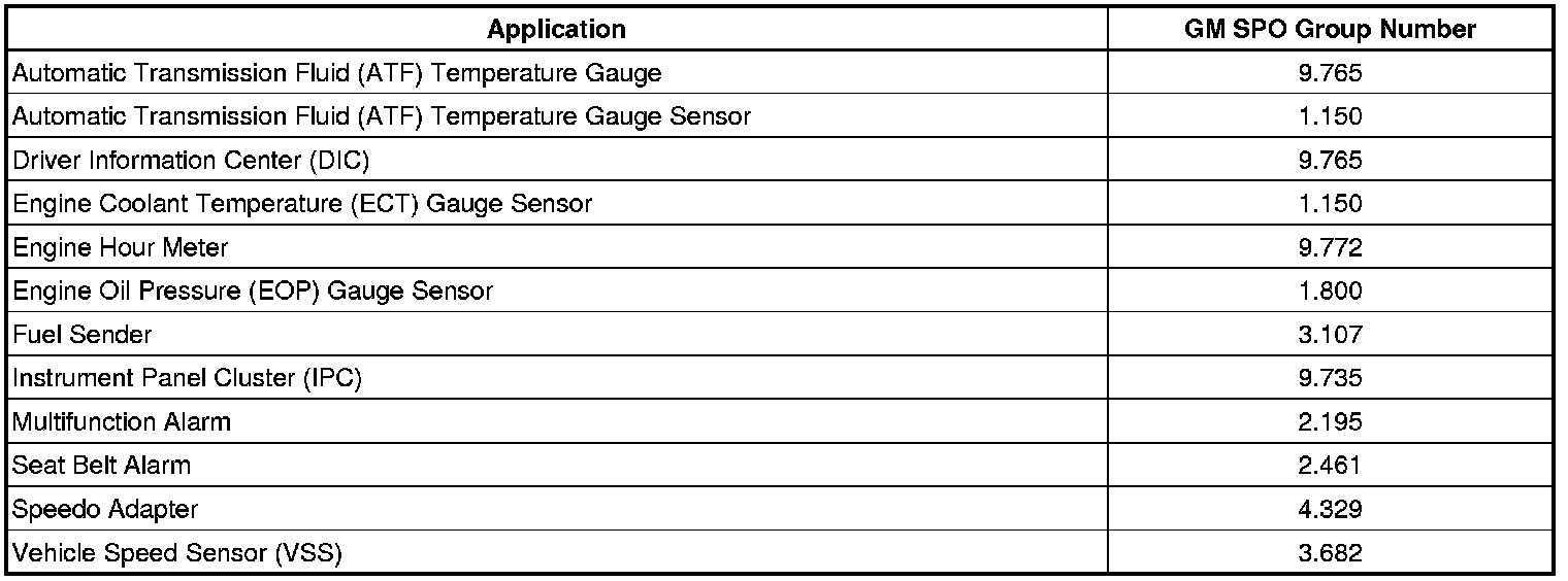 Instrument Panel, Gauges and Warning Indicators: Application and ID