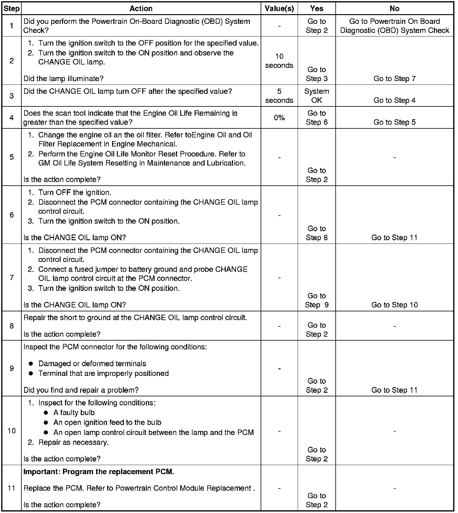 * The PCM will turn the CHANGE OIL lamp ON when any of the following conditions exist: