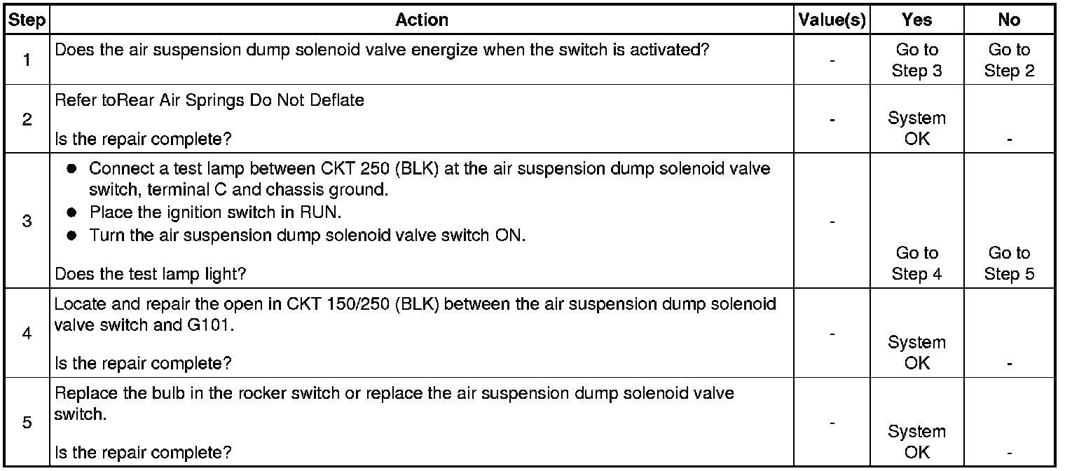Air Suspension Dump Indicator Inoperative