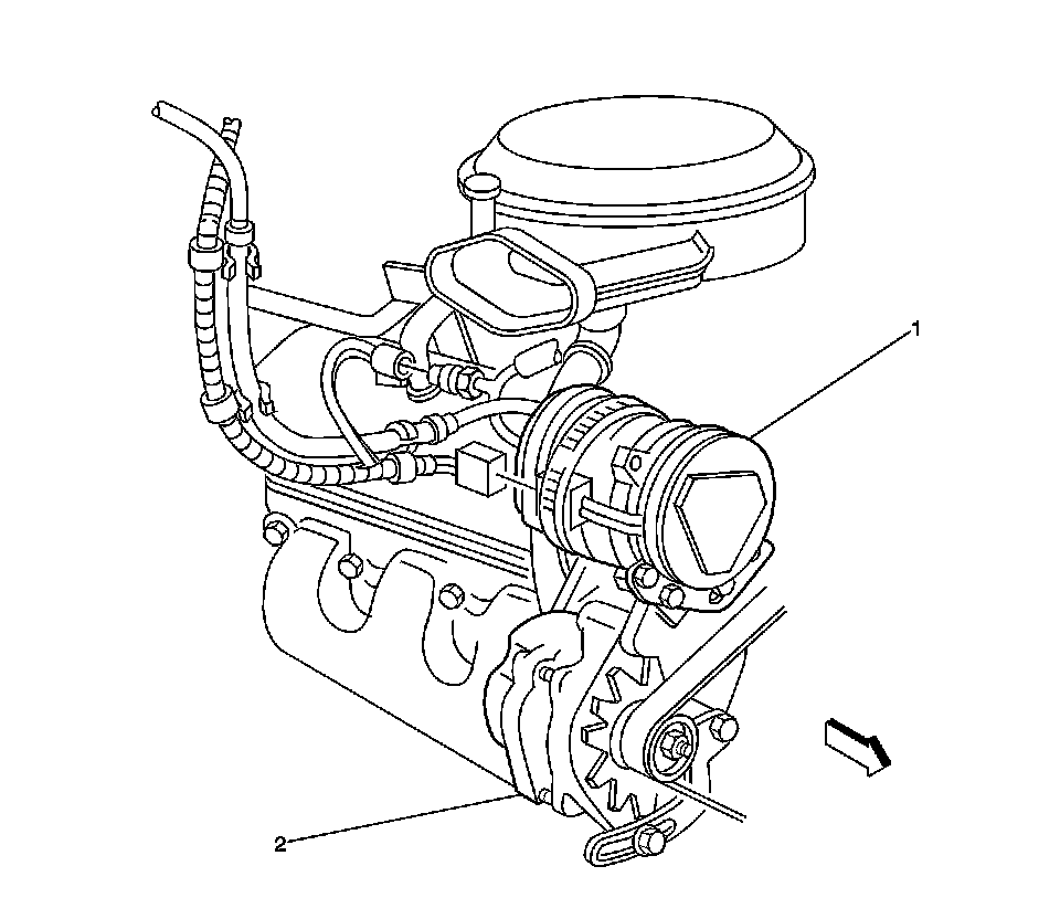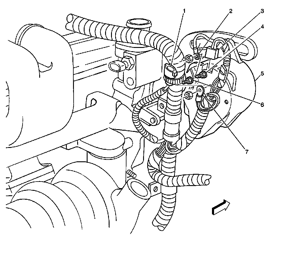 Generator to Engine Ground Strap Components, Upper Right Forward View (LG5)