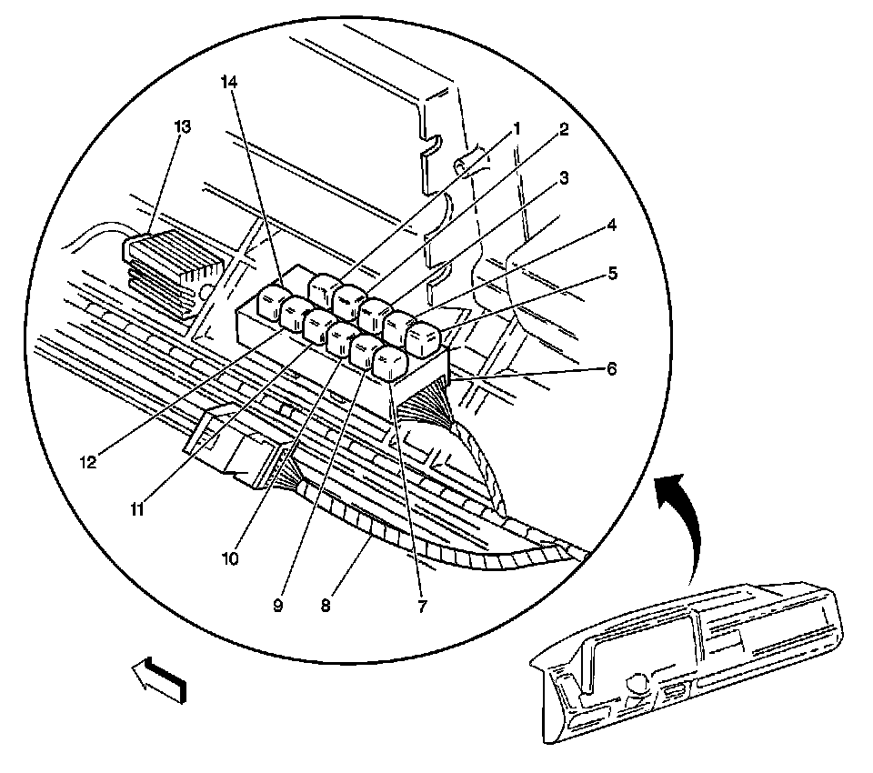 11 - Fuel Pump (FP) Relay (LP4/L21) or Fuel Heater Relay (LG5)