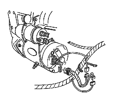 Type 300 starter motors have a grounding terminal installed in the commutator end frame. Type 350 starter motors have this terminal in addition to a grounding stud installed into the field frame in place of one of the pole shoe screws. Refer to Starter Motor Replacement (LP4/L21) Starter Motor Replacement (LP4/L21)Starter Motor Replacement (LG5) Starter Motor Replacement (LG5) for views of the wiring connections to the starter motor.