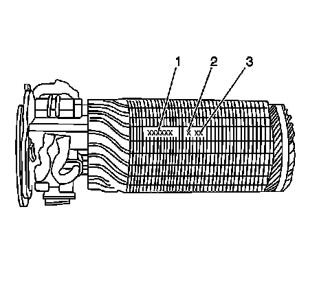 The build date is stamped on the lamentations near the part number (1). The build date uses the following format:
