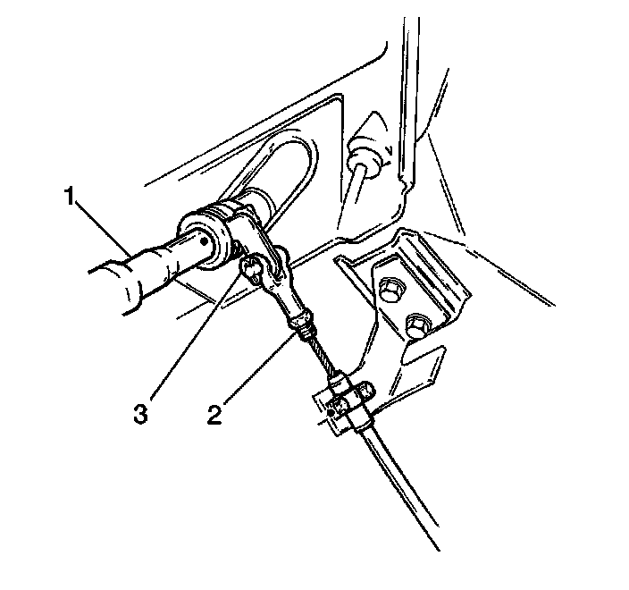 2. Install the cotter pin and the clevis pin (3) in order to secure the shift cable clevis (2) to the steering column (1).