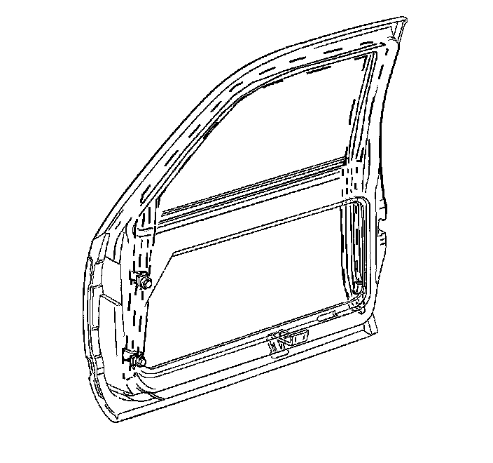 5. Install the water deflector. Refer to Door Water Deflector Replacement Door Water Deflector Replacement.