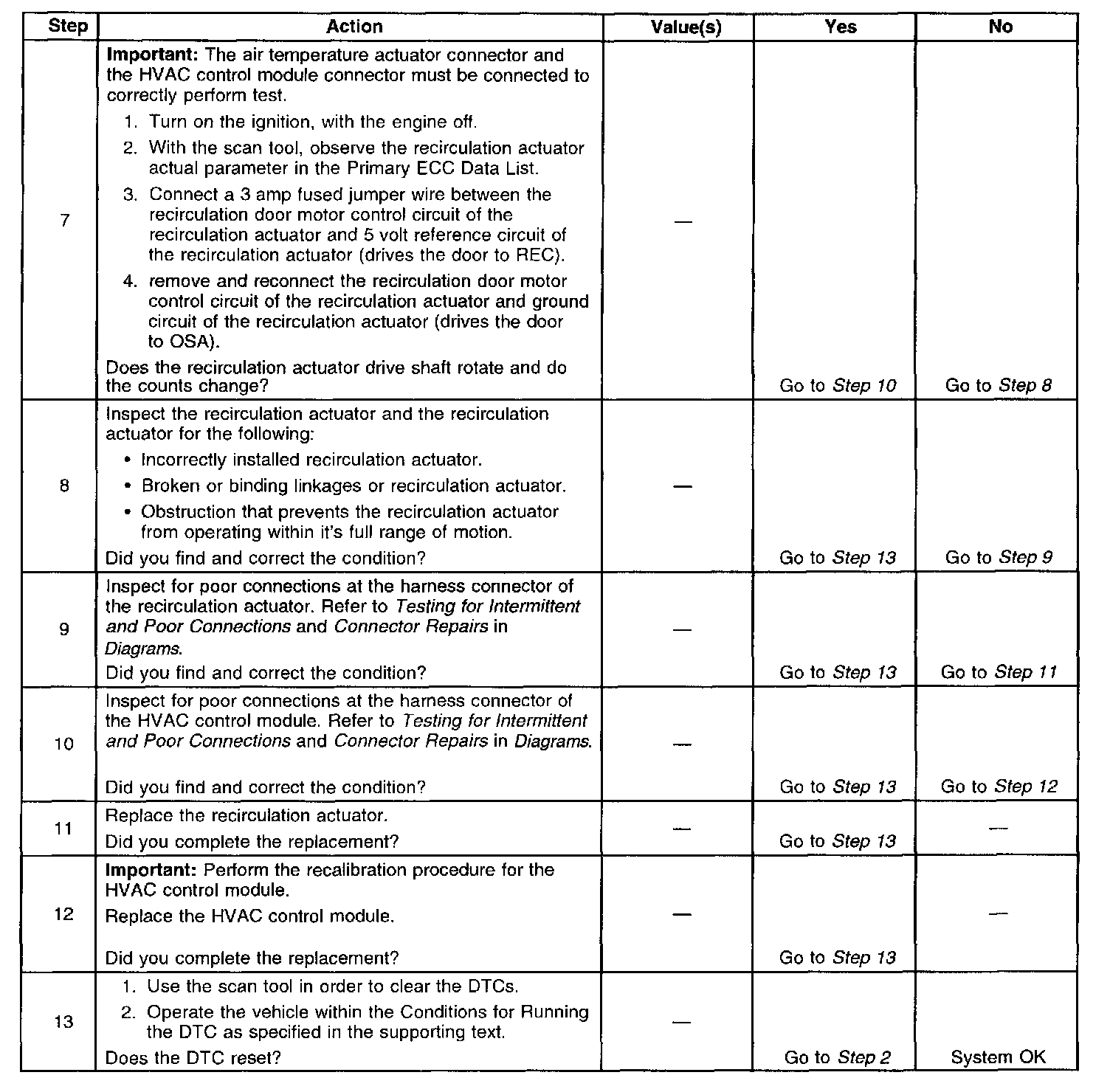- A damaged or broken recirculation door and or actuator can cause this DTC to set.