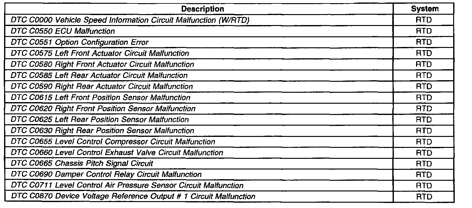 Diagnostic Trouble Code List/System