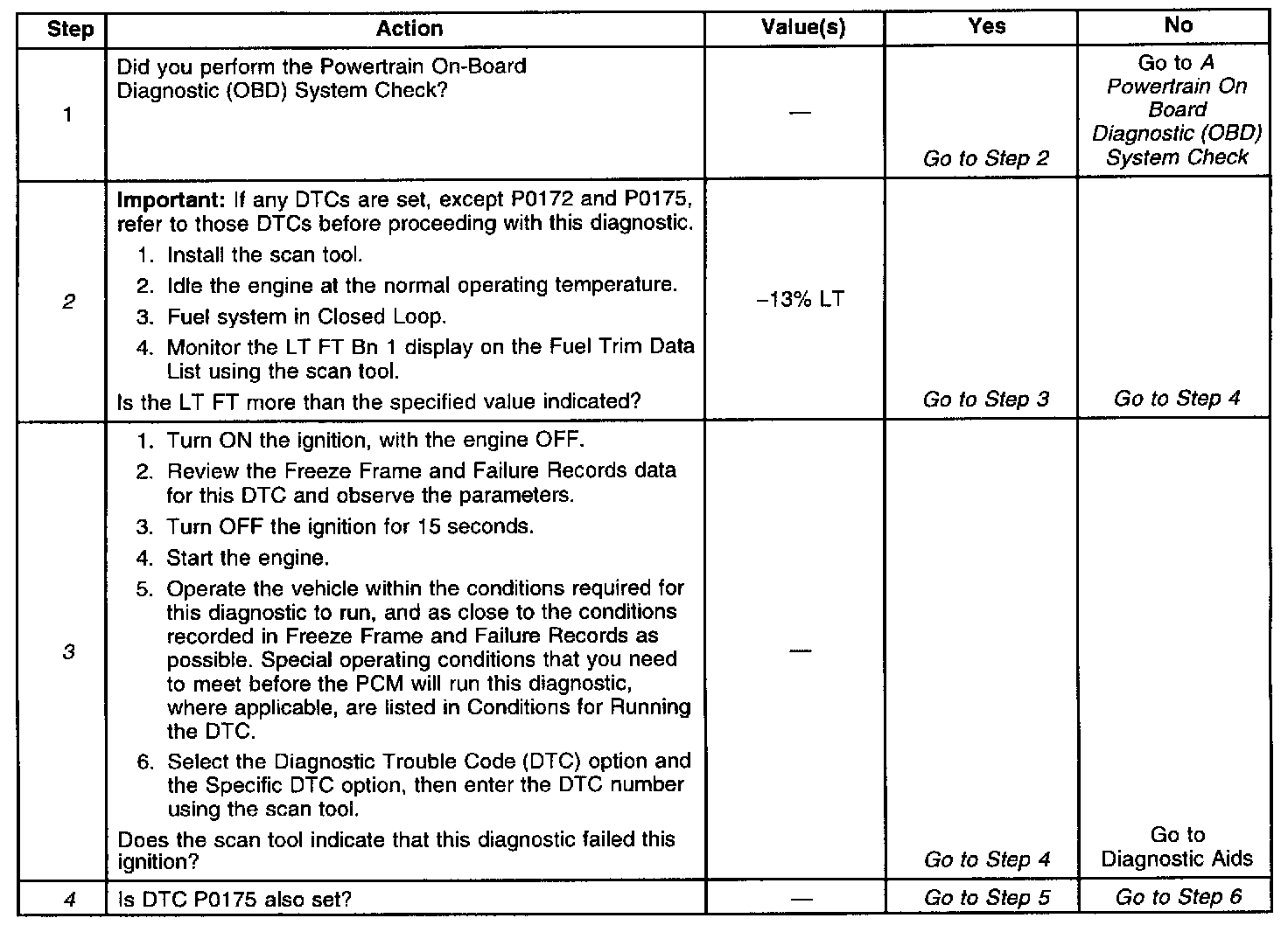 4. If DTC P0175 is also set, then both banks are operating rich. Inspect items that would cause both banks to operate rich.