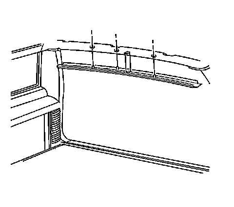 1. If equipped, remove the screws that retain the rear window upper garnish molding to the vehicle.
