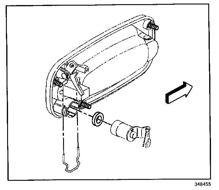 1. Install the lock cylinder into the outside door handle.