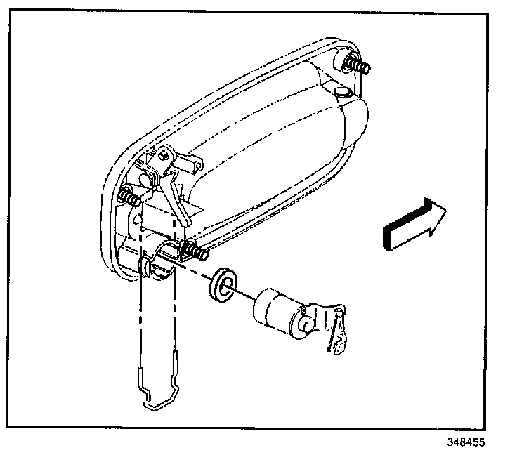 6. Remove the lock cylinder retainer. Remove the lock cylinder from the outside door handle.