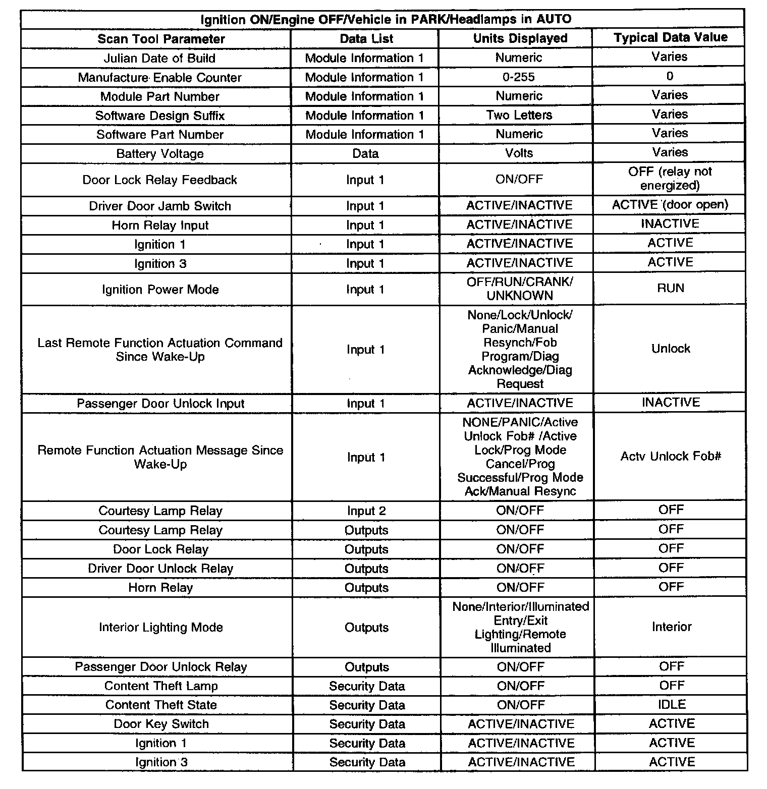 Scan Tool Data List: