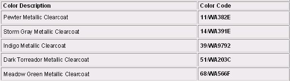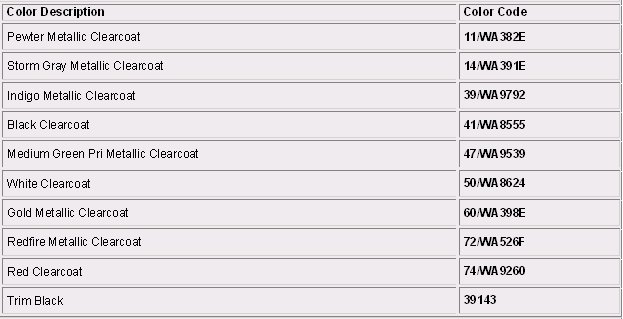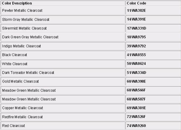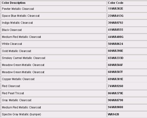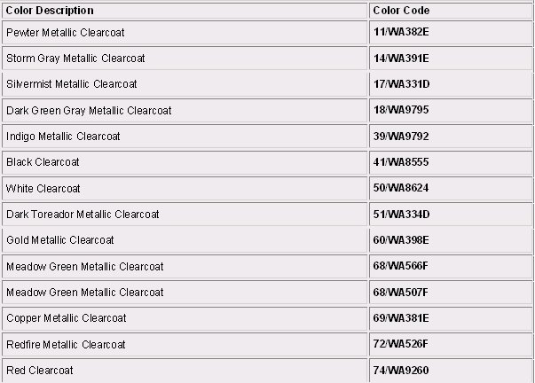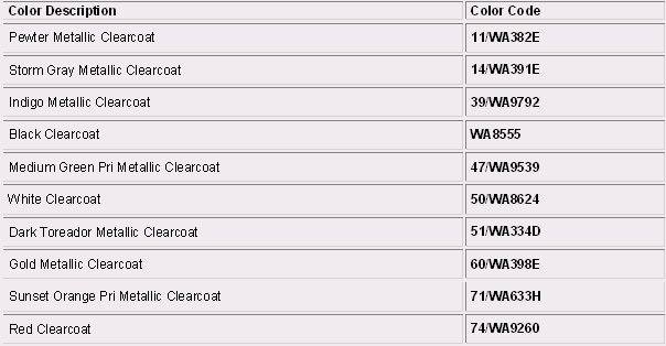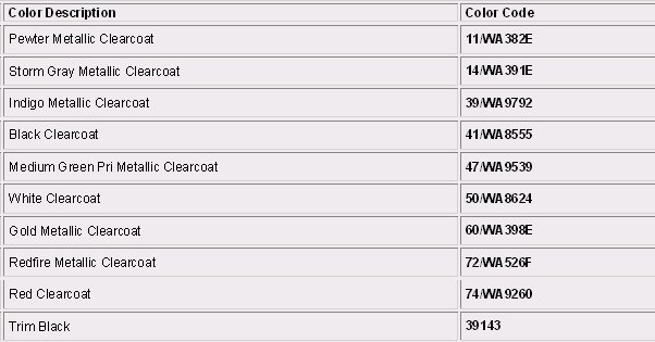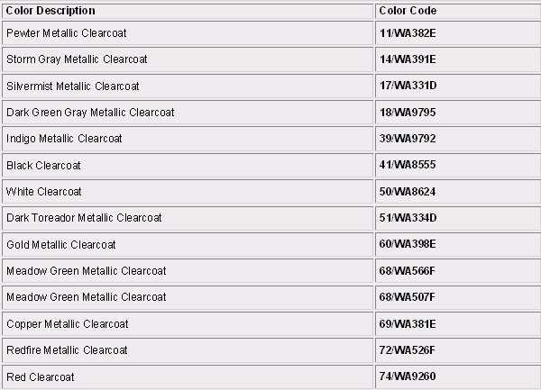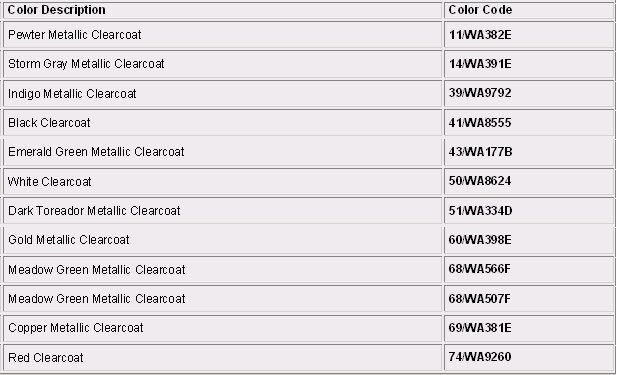 Paint Code Charts