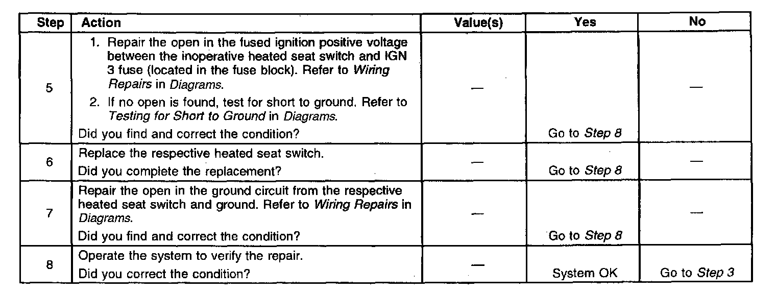 Heated Seat Switch High Indicator Inoperative