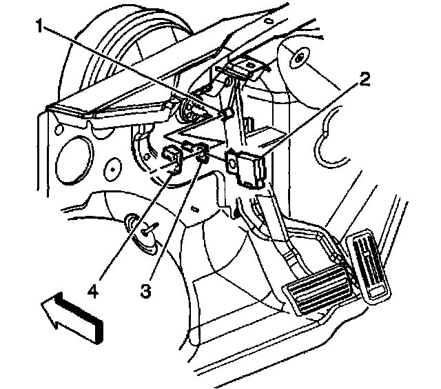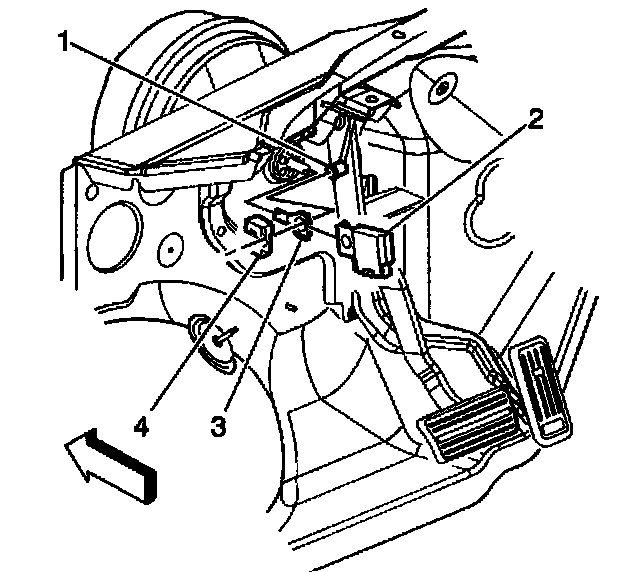 4. Install the pushrod (3) to the brake pedal stud (1).