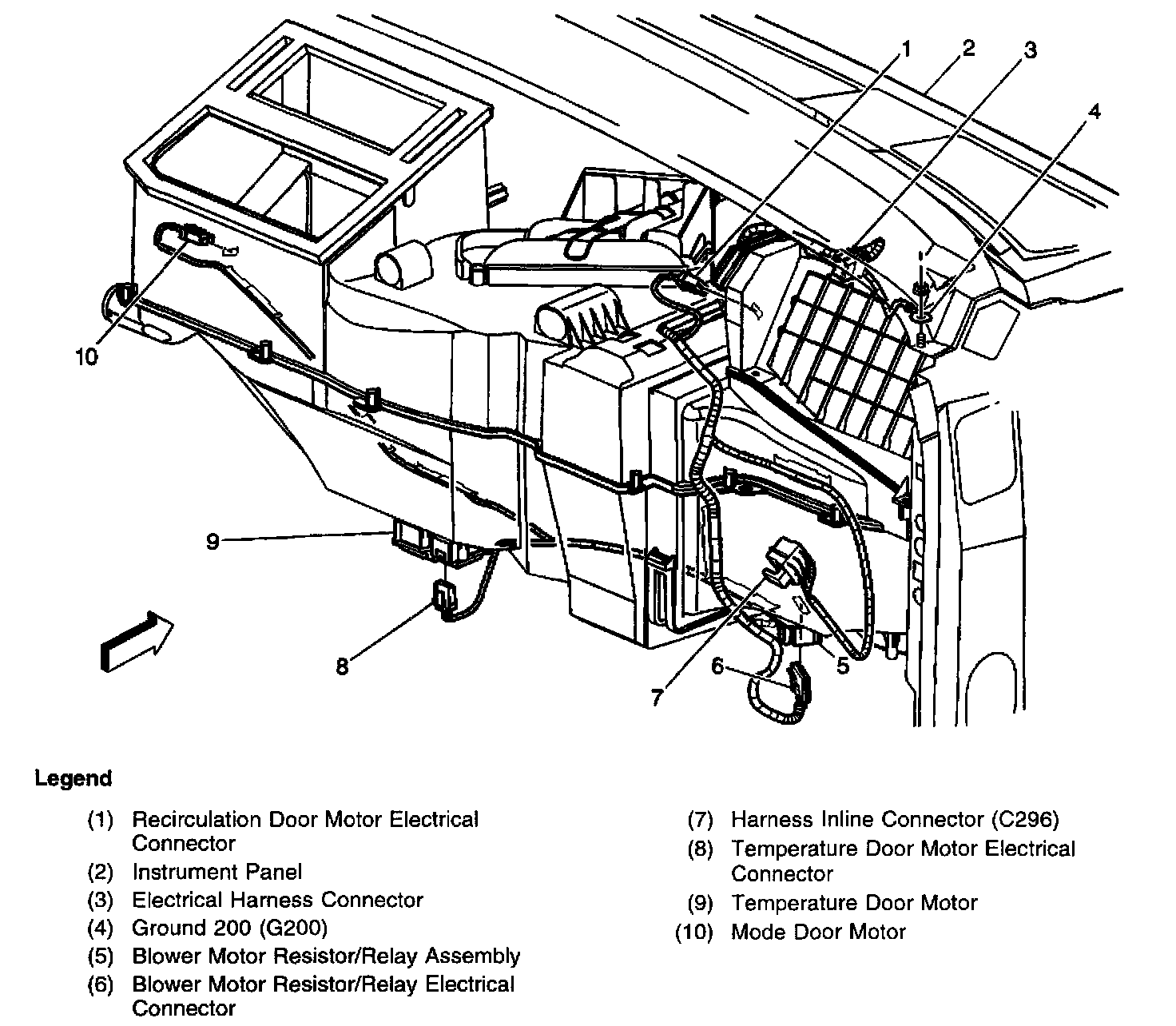 At the right lower IP on the HVAC module assembly near the blower motor