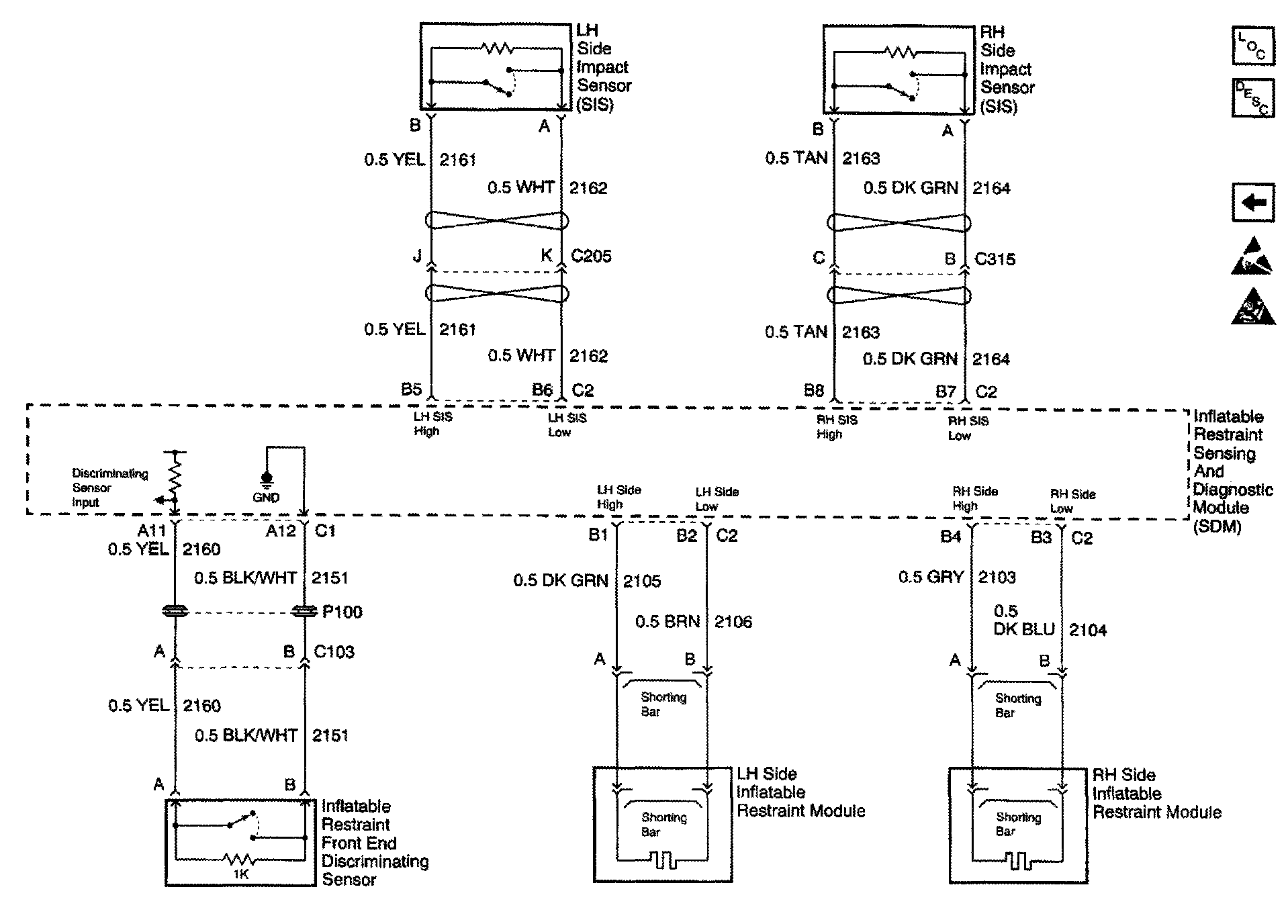 SIR Schematics: Side Impact Sensors, Diag. Module, Side Bags: