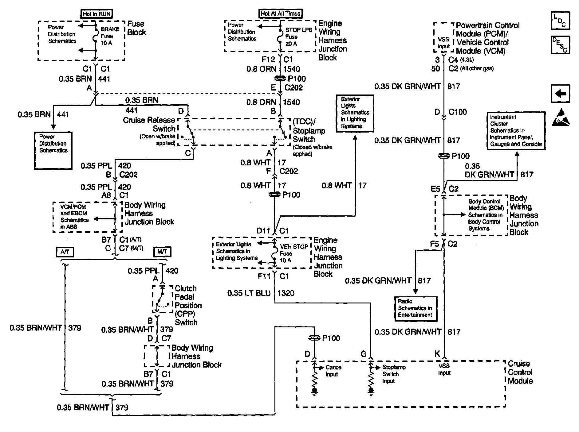 Cruise Control Schematics: Cruise Control Module, TCC/Stoplamp Switch And Clutch Pedal Position Switch: