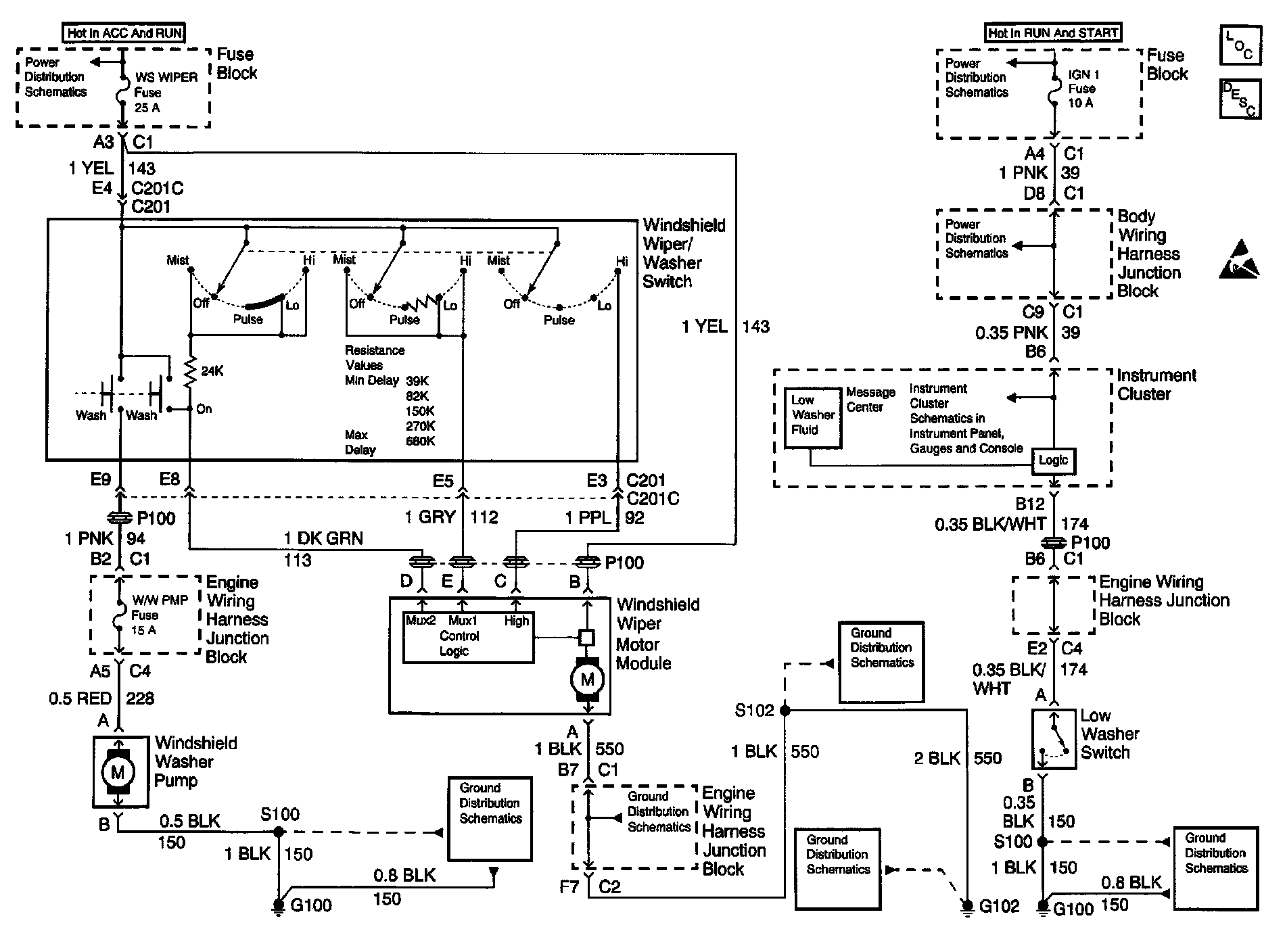 Wiper/Washer System (Pulse) Schematics: Front: