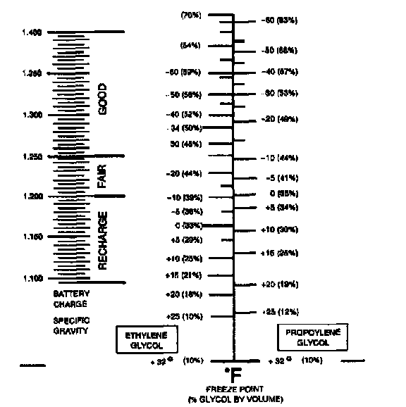 ^ The coolant protection reading is at the point where the dividing line between light and dark crosses the scale. Antifreeze protection is the scale on the right.