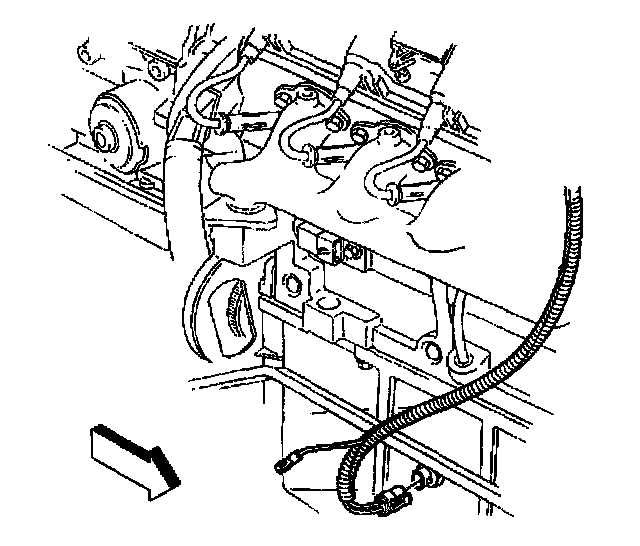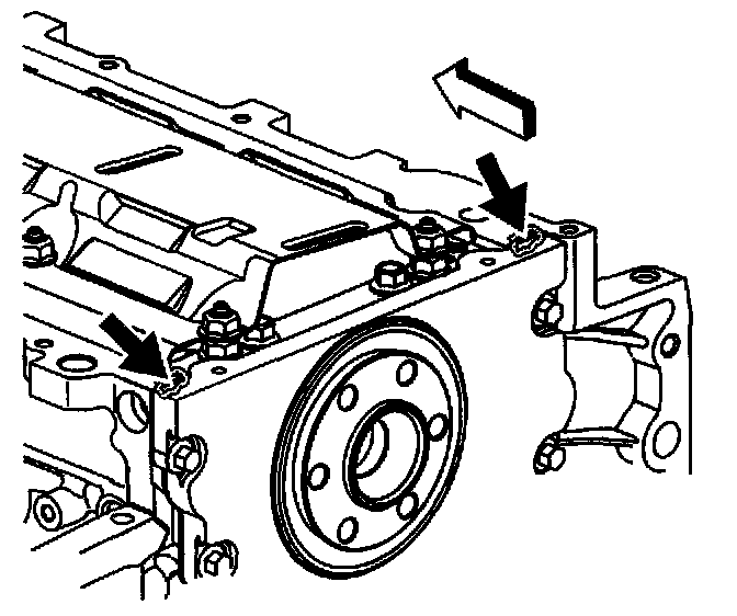 1. Apply a 5 mm (0.20 inch) bead of sealant GM P/N 12378190 or equivalent 20 mm (0.8 inch) long to the engine block.